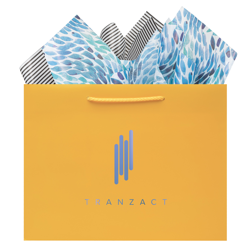 "A classy tote for ultimate brand exposure! Made from 180 GSM matte laminated paper, these shopping totes feature matching fabric handles, reinforced fold-over top and cardboard bottom insert. Perfect for fashion boutiques, small shops, retail stores, swag bags, and so much more. Personalize this tote with our superior quality Hot Stamp decoration and watch your ROI grow!"